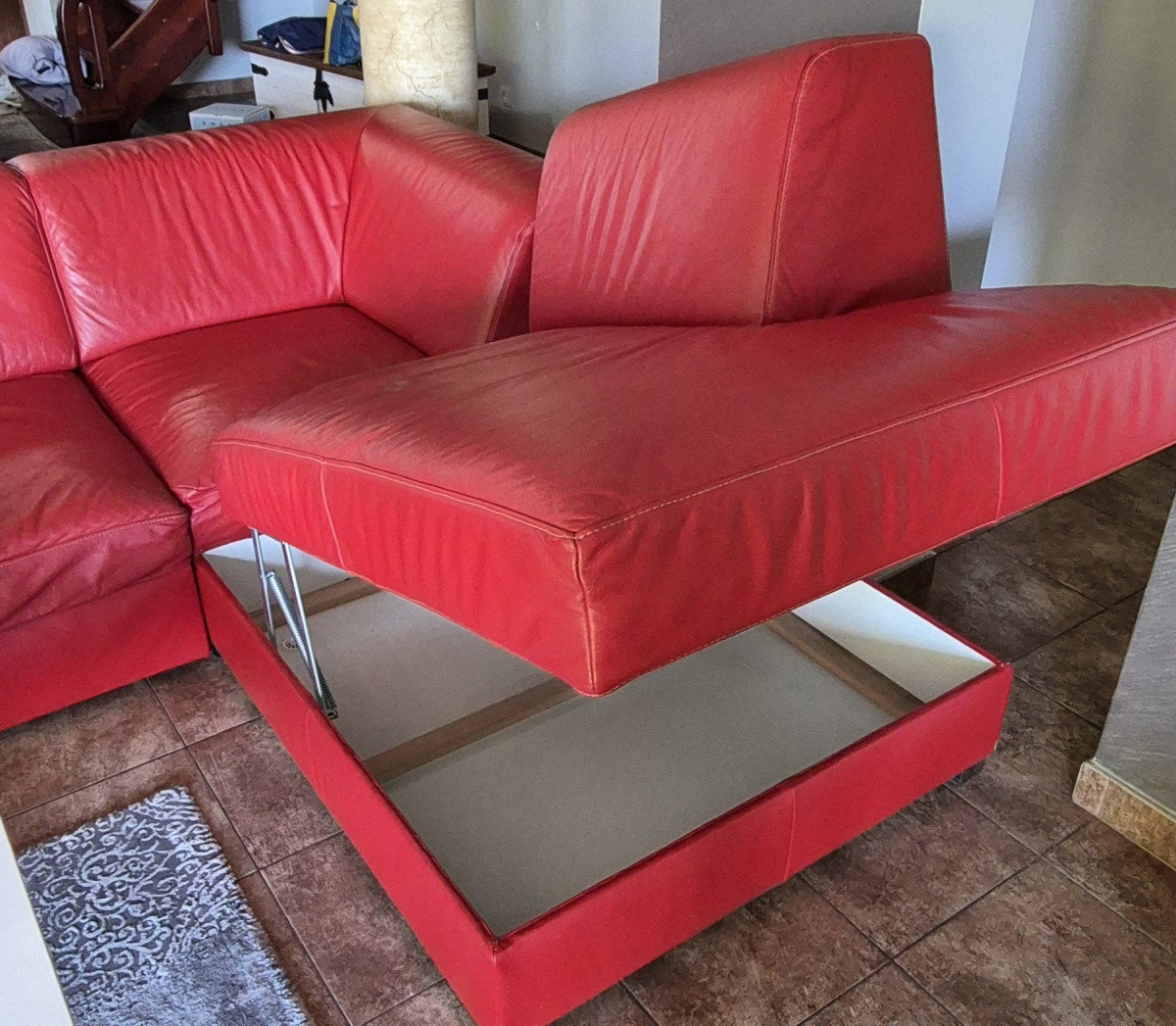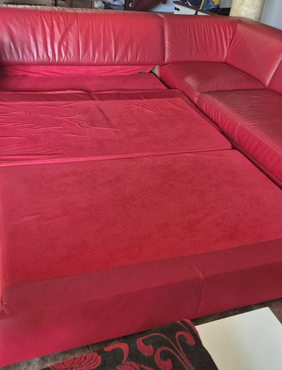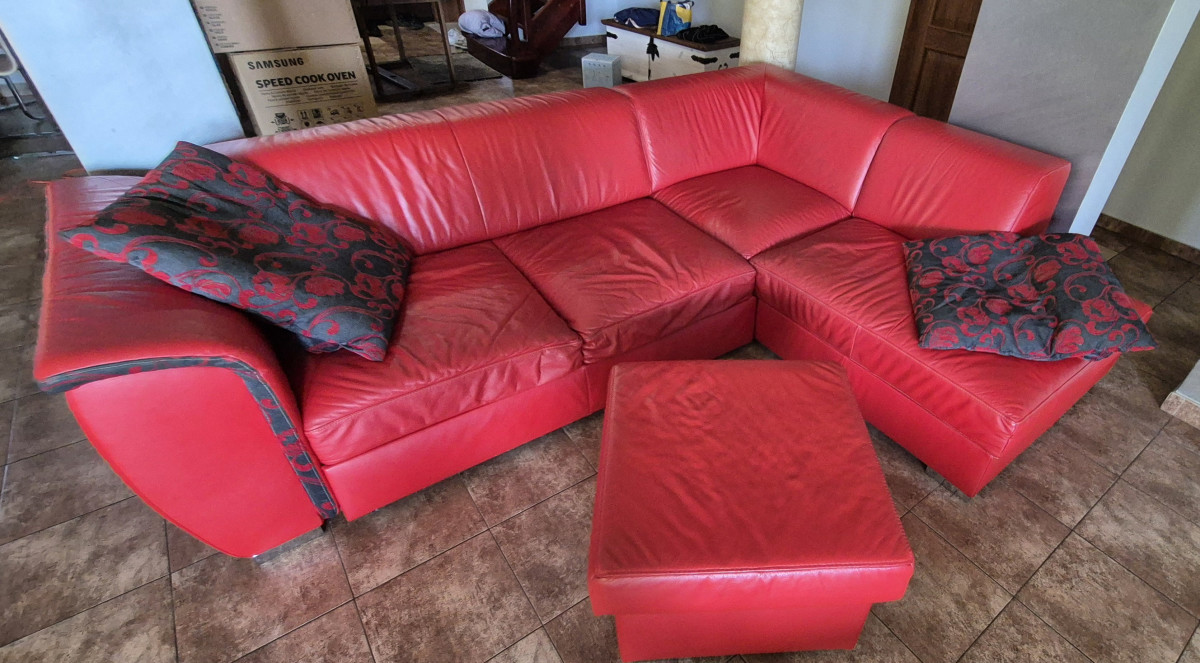 Sprzedam narożnik za skóry , kolor czerwony . Stan doobry .Wymiary 2,75 m x 2.10 m, wys.do siedziska 40 cm .Funkcja spania 1.40 x 2.10 . Skrzynia na pościel. Narożnik ma kilka przetarć na dole. W komplecie pufa 62 x 62 x 45 wys.