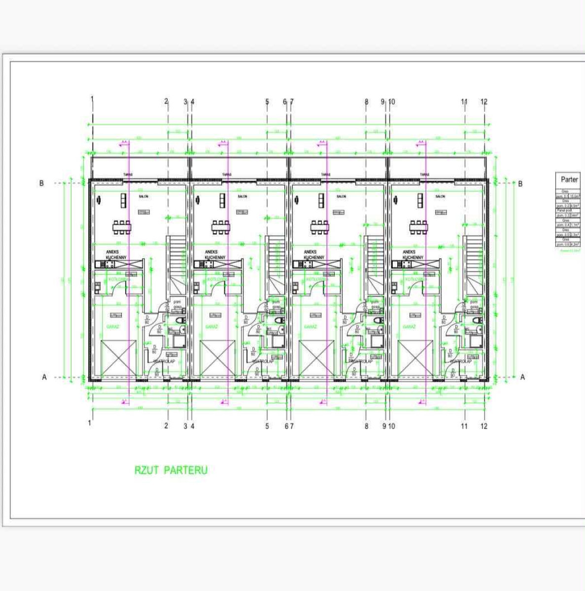 Każdy segment posiada jedno stanowisko garażowe w bryle budynku.
