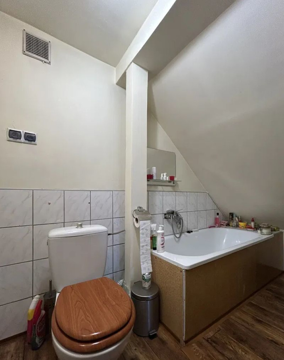 * łazienka na piętrze z wanną i WC,