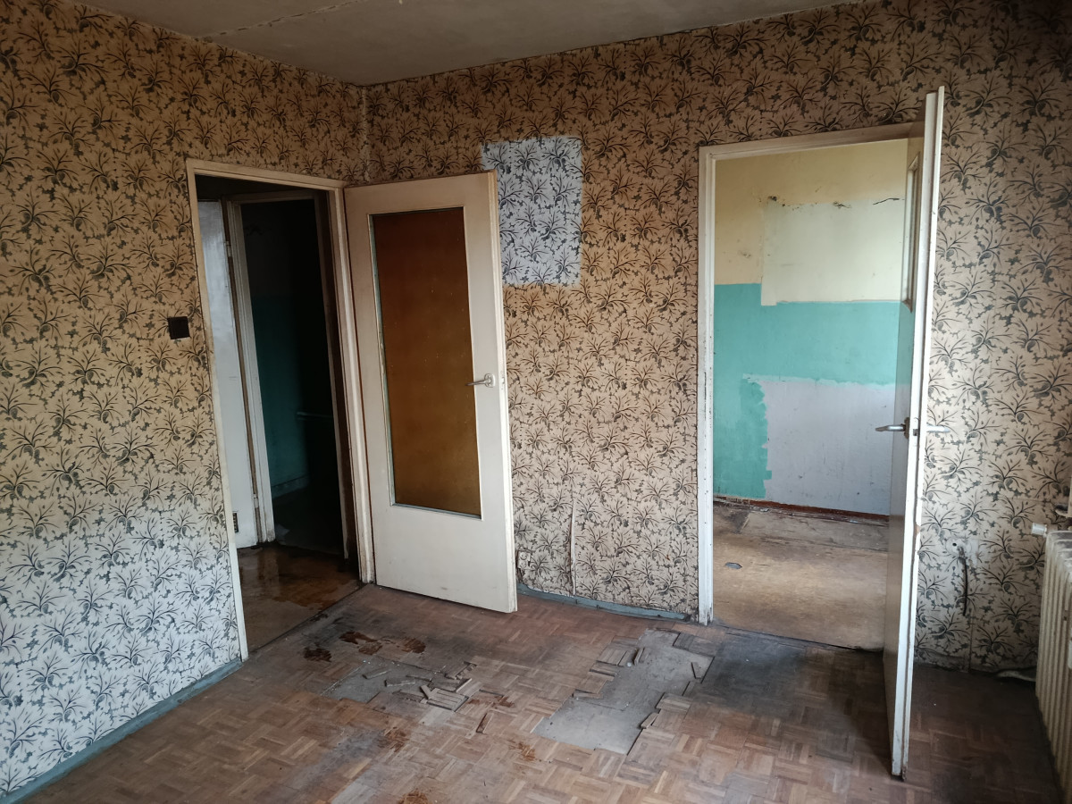 Lokal składa się z dwóch pokoi, ustawnej kuchni z oknem, przedpokoju oraz łazienki z WC. Lokal jednostronny o dogodnym układzie pomieszczeń. Ciepła woda z sieci, instalacja gazowa (licznik). Ogrzewanie miejskie. Brak junkersa. Mieszkanie do remontu. Do mieszkania przynależy piwnica.