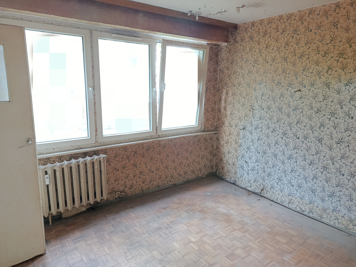 Lokal składa się z dwóch pokoi, ustawnej kuchni z oknem, przedpokoju oraz łazienki z WC. Lokal jednostronny o dogodnym układzie pomieszczeń. Ciepła woda z sieci, instalacja gazowa (licznik). Ogrzewanie miejskie. Brak junkersa. Mieszkanie do remontu. Do mieszkania przynależy piwnica.