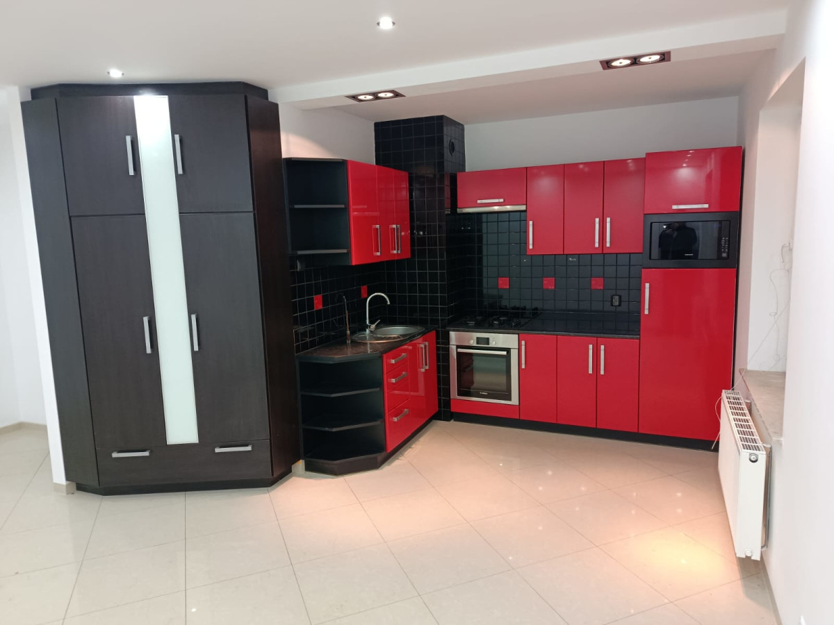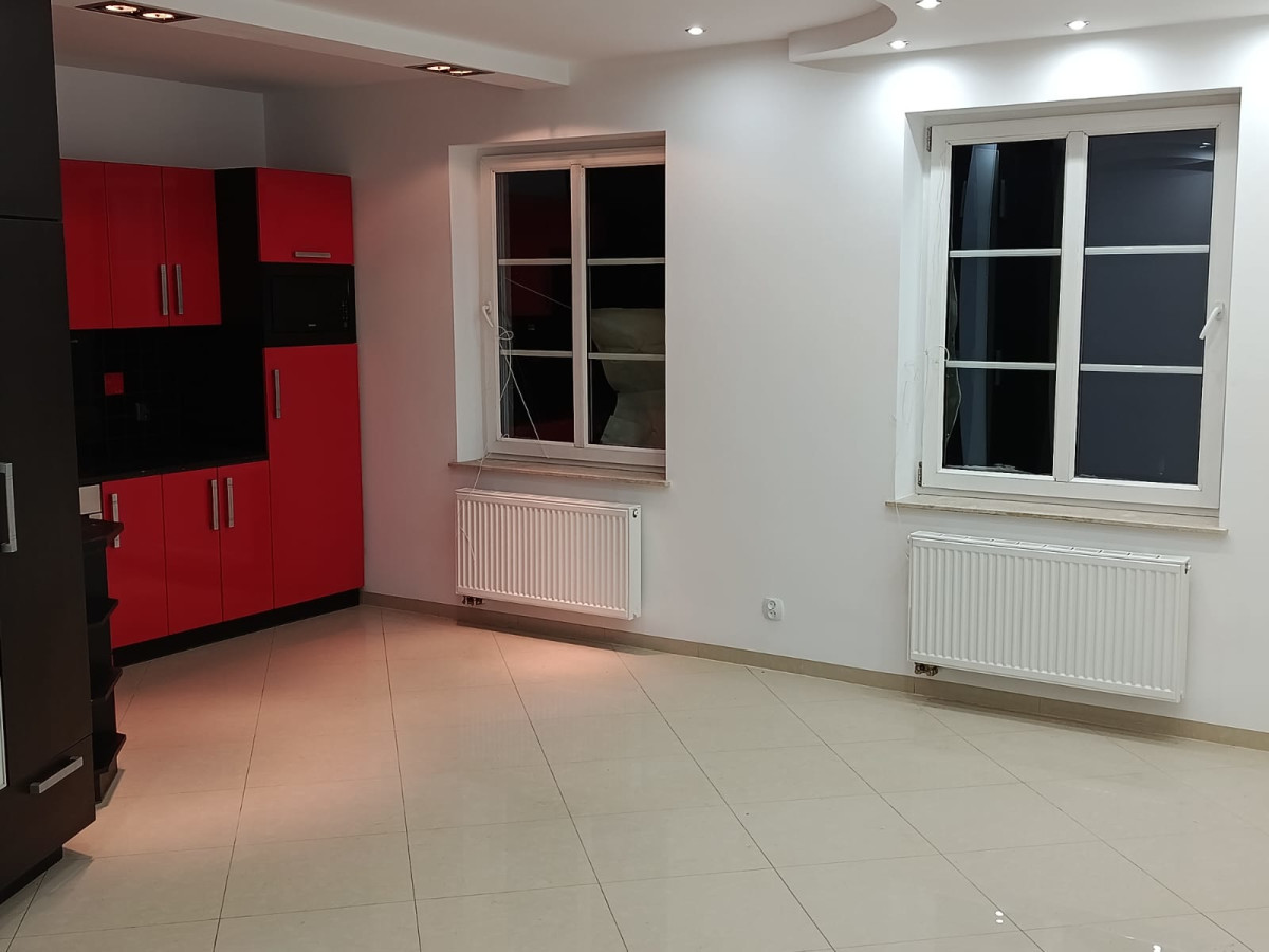 * duży salon z aneksem kuchennym,