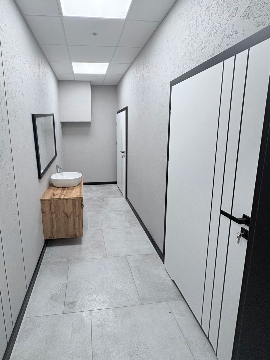 Pomieszczenie stanowi część większej, profesjonalnie zaprojektowanej przestrzeni biurowej, co zapewnia komfort pracy oraz dostęp do pełnej infrastruktury wspólnej: