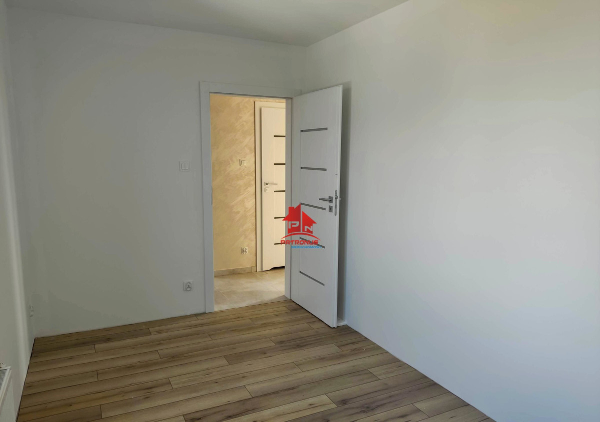 W korytarzu położony jest tynk ozdobny. Mieszkanie pomalowane na biało. Ogrzewanie miejskie.