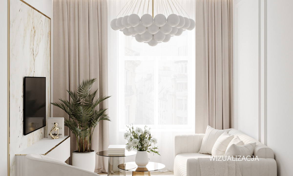 - Ustawny, prostokątny układ - łatwo wstawisz aneks i strefę dzienno-sypialnianą lub stanowisko do pracy,