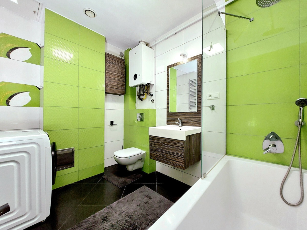 Dwa pokoje posiadają wyjście na słoneczną loggię, będącą naturalnym przedłużeniem strefy wypoczynkowej – idealne miejsce na poranną kawę lub wieczorny odpoczynek.