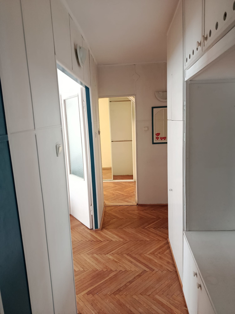 Mieszkanie składa się z pokoju z wyjściem na balkon, kuchni, dwóch sypialni, przedpokoju oraz łazienki z WC.